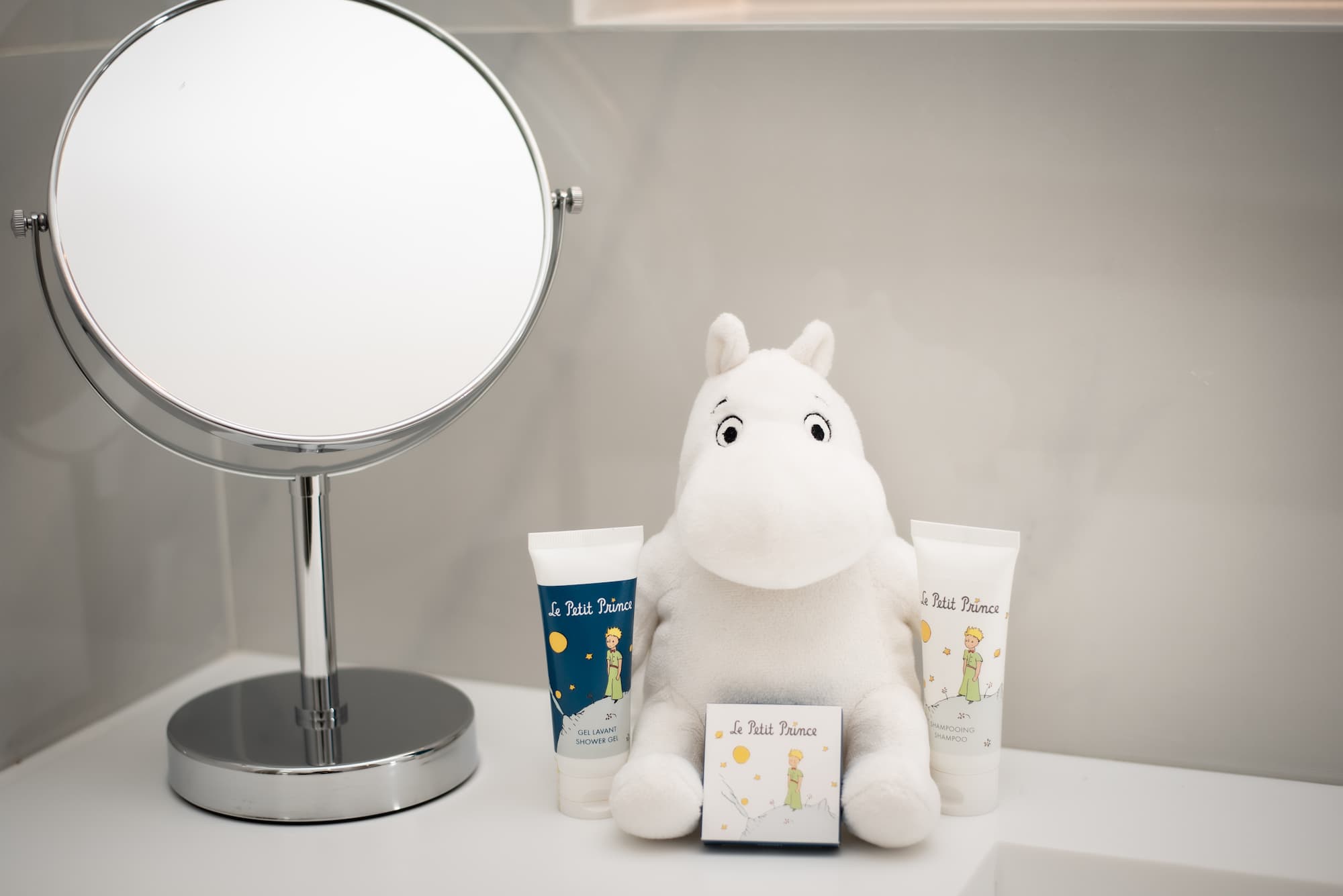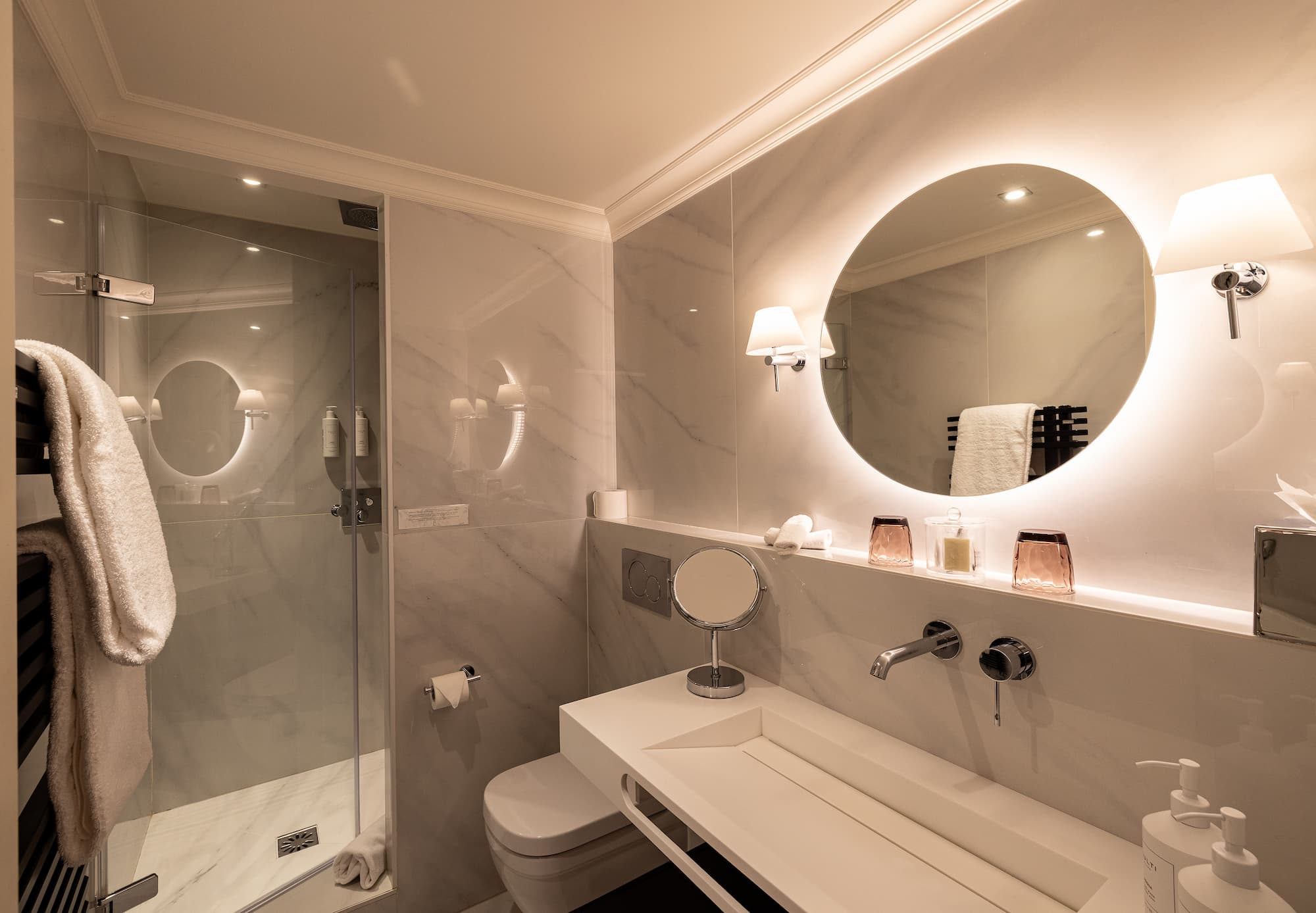 La Junior Suite déploie de généreux volumes et un coin salon lumineux agrémenté d’œuvres d’art.